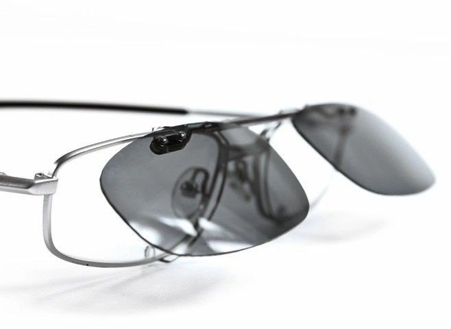 Bardzo cienka i lekka (10 g) nasadka przeciwsłoneczna, zapewniająca 100% ochrony przed promieniami UV. Idealnie nadaje się do okularów bezramkowych. Jest to wysokiej jakości specjalistyczny produkt japoński posiadający opatentowany system mocowania, który umożliwia prosty i łatwy montaż oraz łatwą i łagodną zmianę pozycji (60°/120°/180°). Nasadka jest łatwa do cięcia, mocowana blisko soczewek (ok. 2mm) przez co występuje znacznie mniej drażniących refleksów a jej silikonowe zabezpieczenie chroni przed zarysowaniem soczewek. Wszystkie elementy wykonane ze stali nierdzewnej, aby zapewnić szczególnie długą żywotność. W komplecie dołączone jest miękkie etui.